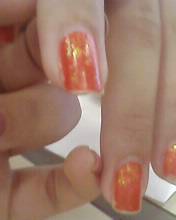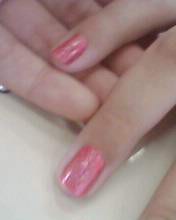 Essa é a unha da Malu, eu fiquei de tirar fot da unha dela desde a semana passada, mas eu sempre esquecia a câmera, :P. Ela passou o Beijo Me Liga, da coleção Rebelde - Impala.